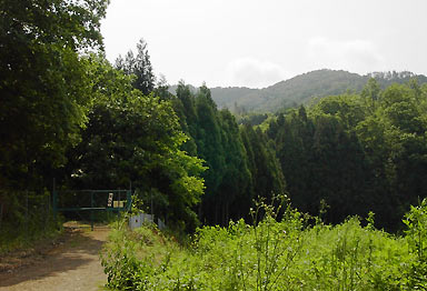 ため池の南から山腹へ延びる破線道を採るという。破線道は林道になっている。ゲートをあけて入り