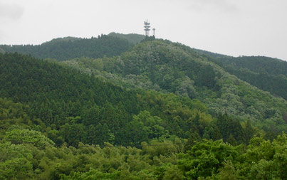 杉木立の間から北東に見えるのは雲石嶽だろうか。