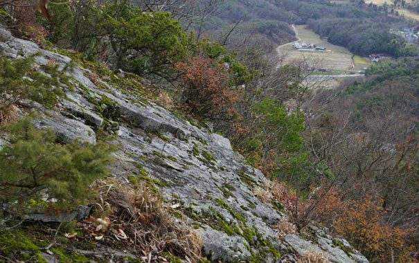 そうそう、西の露岩はと少し道を外してみると季節外れのミツバツツジ。先週も見たような。なんと、その先に展望が