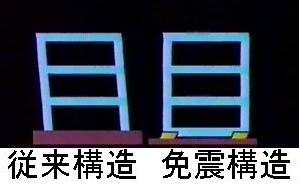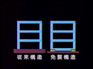 免震ビルの動きアニメーション(440Kbyte) 免震と従来構造のゆれの比較