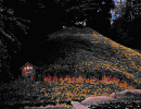 三つ葉葵  将軍家から水戸徳川家に寛永4年(1625)小石川の邸地を下賜され中屋敷とし、初代藩主徳川頼房が大徳寺左兵衛に命じて作園、二代光圀の時に完成した。回遊式築山泉水庭園、クマザザの築山を築き、滝を落とし、大井川の景を縮し、明の朱舜水が参画し円月橋、西湖の堤など中国の風物も取り入れられている。