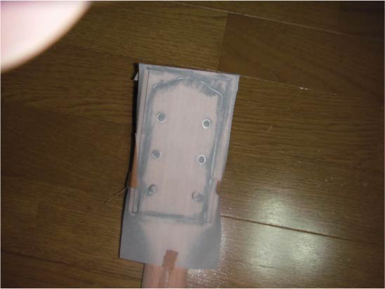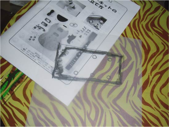 ヘッドにテープでとめて、ボールペンでなぞります。 I traced th shape. |