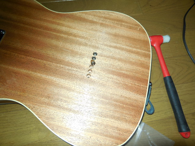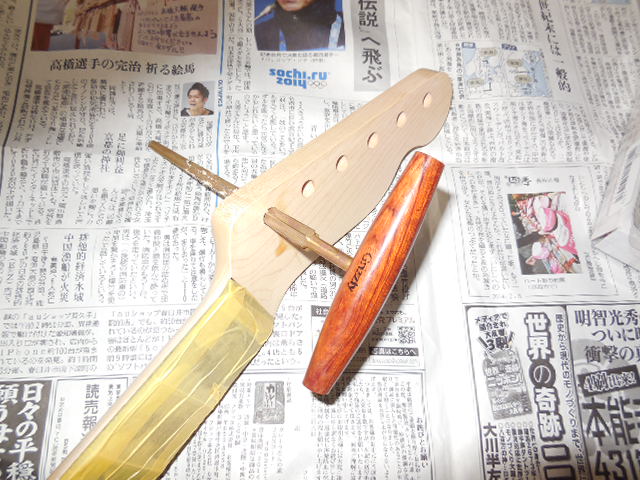 | リーマーでスパーゼル用に穴を広げます。 I made holes wide with a reamer for Spazel tuners. |