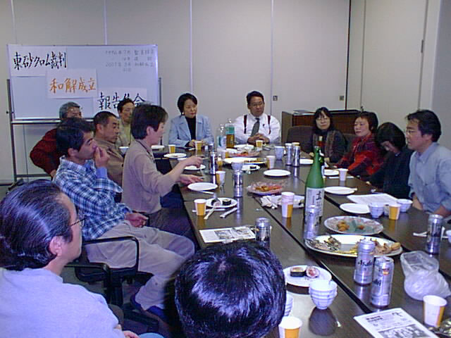 いままで、2人の証人尋問等を行ってきたが、日本化学工業が江東区にいくらかの和解金を支払う方向で和解協議が進み、以下の内容で、平成13年3月21日に和解が成立。