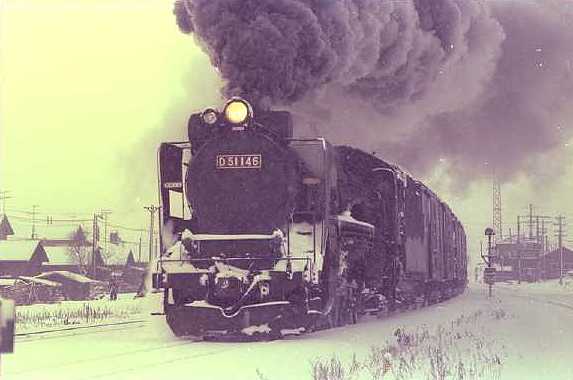 新雪の中をゆっくり進む蒸気機関車D51146