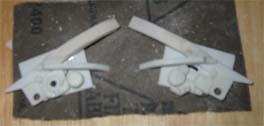 これは側面に見える、一般に「エンジン」と見られる部分の造形。実際にはこのあたりにはクラッチ、ドライブスプロケット、オイルタンクなどの二次減速機構がつまっております。実際に運動を生み出すピストンやクランクシャフト、コンロッドなどが収まるシリンダー部分、燃料を供給するキャブレターはZZRではカウリングに隠れて見えません(ムリに近づいてみれば見えるけれど、このスケールでは意味がないのでオミット)。