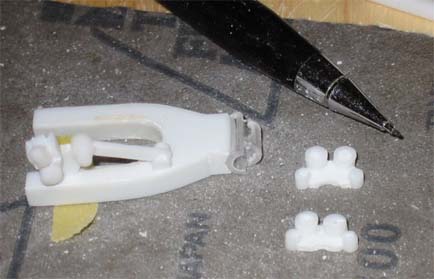 そばに2つあるのが同時に作ったフロントブレーキのキャリパー。で、上にあるのが100円の0.5mmシャーペンなので、それから大きさを想像してください。
