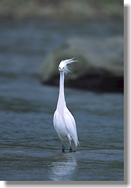 | 「○○川にカラシラサギがいましたよ」。鳥たちの渡りの季節、殆ど竜飛崎の住人と化すEさんが教えてくれた。Eさんは青森県の鳥見人の中では1、2を争う酒豪としてその名を轟かせているが、とりあえずそのことは今回の話と何の関係もない。 カラシラサギである。この鳥との出会いはいつも唐突だ。秋の道東で、夏の徳島で、偶々出会ったことがあった。遠目に見れば、足の短い小さなシラサギ。図鑑で調べてみると、朝鮮半島や中国南部といった限られた範囲にしか分布しない希少な鳥らしい。彼らには国境が無いから、風が吹けば気の向くままに日本まで飛んでくることもあるだろう。僕のあったカラシラサギはそんな鳥たちだったに違いない。Eさんの見つけた白い鳥も、きっとそういう鳥なのだろう。 竜飛崎へ向かう途中に目的の川はあった。これまで気にも留めなかったその川は、地元の方によればとりあえず覗いておくべき場所らしい。言われてみればウミネコやオオセグロカモメが河口を飛び交っている。ツバメやイワツバメも川面をスイスイ飛んでいる。セグロセキレイやハクセキレイが川に転がる岩に止まって歌っている。どこを見ても鳥の姿が目に入ってくる。なかなかいい川のようだ。 お目当ての白いサギはすぐに目に止まった。そもそも津軽にはシラサギが少ない。たまにダイサギを見かけるくらいで、アマサギなど南方のサギは珍鳥の部類に入る。だから、サギがいるだけで風景にどこか違和感を覚える。まるで間違い探しでもしているかのように。 Eさんから1羽と聞いていたカラシラサギは2羽に増えていた。仲良く連れ添って飛んで来たのかと思っていたら、「ゴアーッ」と叫びながら2羽は喧嘩を始め、結局1羽はどこかに追い払われてしまった。数少ない仲間同士、仲良くすればいいのにと思うけれど、相性の良し悪しがあるのは人も鳥も変わらないのだろう。 河原に腰を下ろし、この川を独占したカラシラサギをじっくり観察することにした。コンビニで買ったサンドイッチを頬張りながら、浅瀬で魚を追いかけるサギの動きを目で追う。これまで近くから見たことが無かったので気付かなかったが、なかなか眼光の鋭い鳥だ。首を伸ばしたり縮めたり、全身で何かを表現しているような鳥の動きにしばし見とれる。 細い首をすっと伸ばしたまま、鳥がこちらに近づいて来た。一歩また一歩、ゆっくり歩いて来る。立ち止まり、こちらを凝視している。鳥と視線を共有するその時、海からの風がピューと吹いて、白い冠羽がたなびいた。(ああ、かっこいいなあ・・・)。長い髪の鳥を見たのはこれが初めてだった。鳥は不意に僕から目をそらし、足下の水面を嘴で突いた。嘴の先には銀色の魚がキラキラと輝いているのだった。 |