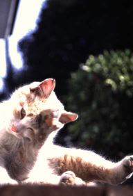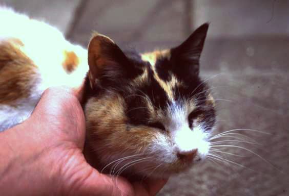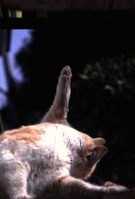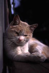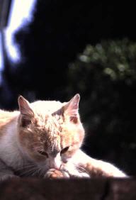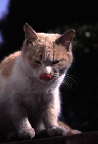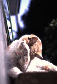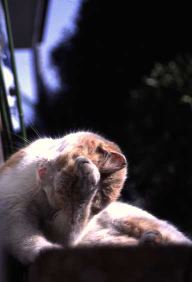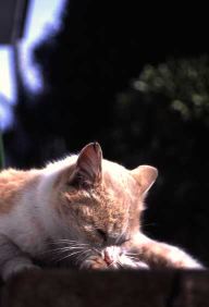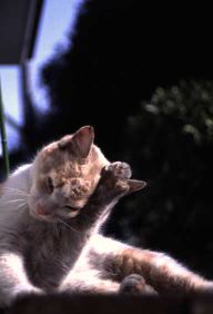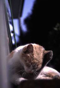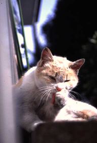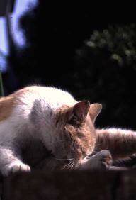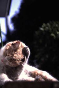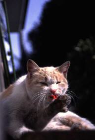 このページの写真は、ねこが顔を洗う様子を写したものであり、日本ねこ学会で 世界でも貴重な資料であるとして発表したものです。(うそ:-)