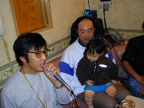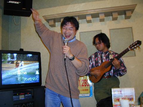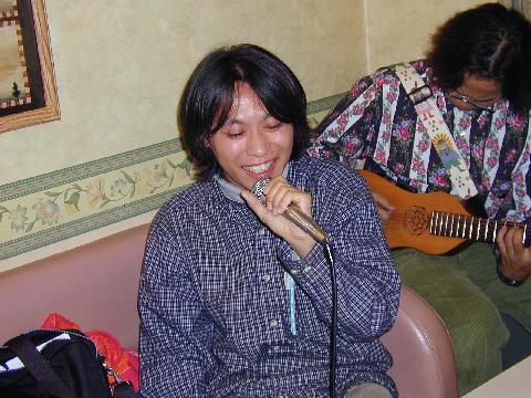 | ●もう、マイクは渡さないわ! | ●下を向いてドラムをたたく人とギターをひく人とカメラ目線の丞くん | ●ここはシダッ○ス? |
