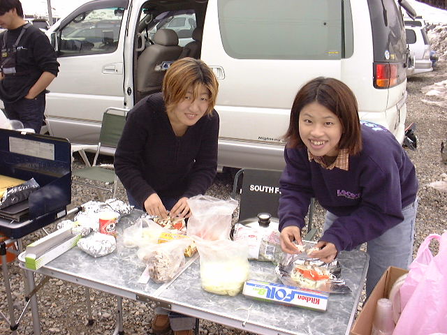ホイル焼きをするときは、菓子箱のふたにアルミを張って、これをかぶせるといいよ。ひっくり返さなくても、早く火が通ります。たまには、変わったメニューでBBQを試してみてね。