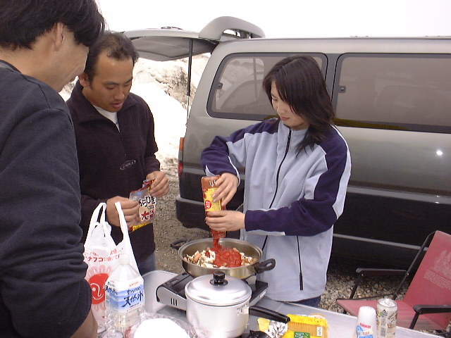 これをフライパンで、いためる。玉ねぎが透き通ってきたら、塩胡椒を少々、トウバンジャンを小匙半分くらい、だしの元を少々入れる。しょうゆを足して、味を調える。