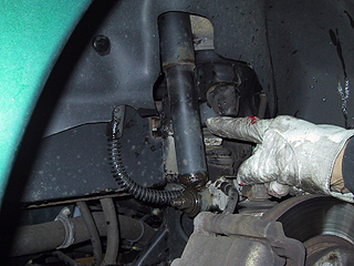 まずは、ショックの交換からです。フロントから先に交換作業を開始しました。 |