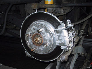 リアの交換も完了。あとは(これまた新品の)タイヤを取り付けて、交換作業は全て完了です。もちろん、このあとに時間をたっぷりかけて調整が待っています。 |