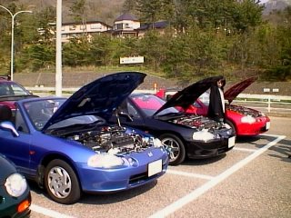![]() (97.4.27) | 普段は、タノウラ(シーサイドライン田ノ浦駐車場)で1列に並んでエンジンルームの虫干しをしたり、 |