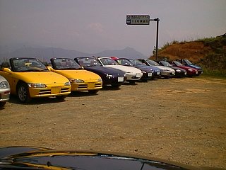 魚沼スカイラインにて。派手なオープンカーがズラッと並んだ様子は圧巻です。この日は天気も良くて、最高でした。 |