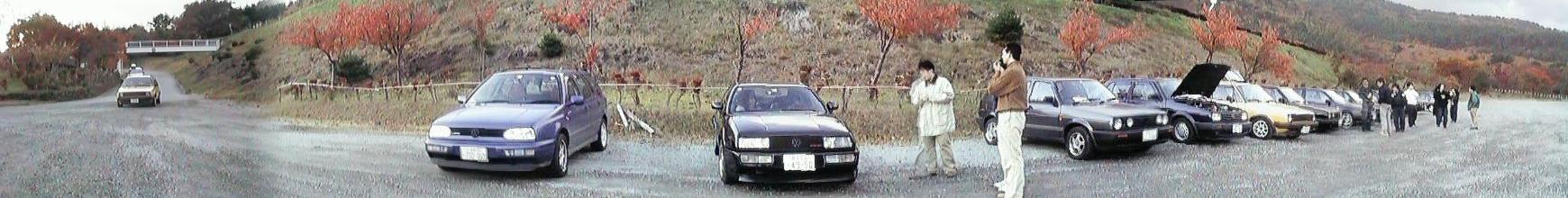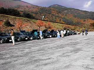 新蕎麦を堪能した後は、今回のオフミ会場の磐梯山のふもとにある天鏡台という所へ移動。13台のVW車が連なっての移動で、すれ違う車の運転手は珍しそうに見ていました。