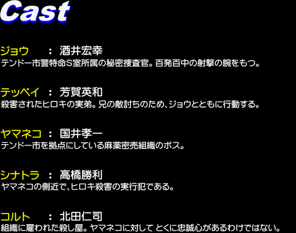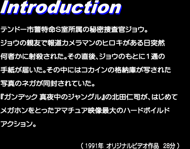 この作品は、ガンアクション映画をこよなく愛する一ファンが、単純に自分も仲間内で映画ごっこを楽しみたいというコンセプトをもって制作したものであります。したがいまして、これらに値段をつけて販売し、公衆に流布することで利益を上げる等、収入の糧となるような