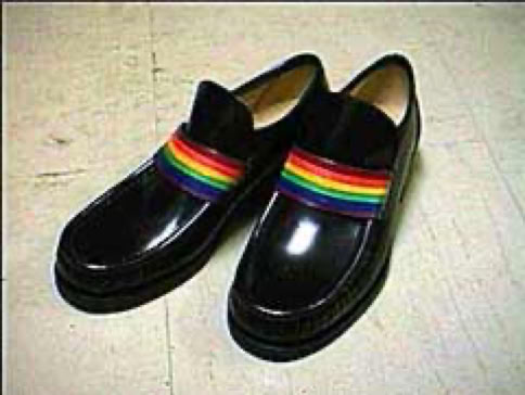 午後は買い物ツアー。Yes, we are very Japanese ! 僕はスニーカーとローファーを買う。このローファーはパトリック・コックスのデザインで、レインボーカラーのベルトが付いてるという変わり物。こんなものいつ履くのよ! いいの! 欲しかったの! 写真は、そのレインボーシューズ。