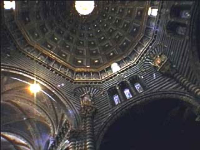 シエナの大聖堂/中央ドームの明かり採りを見上げたところ