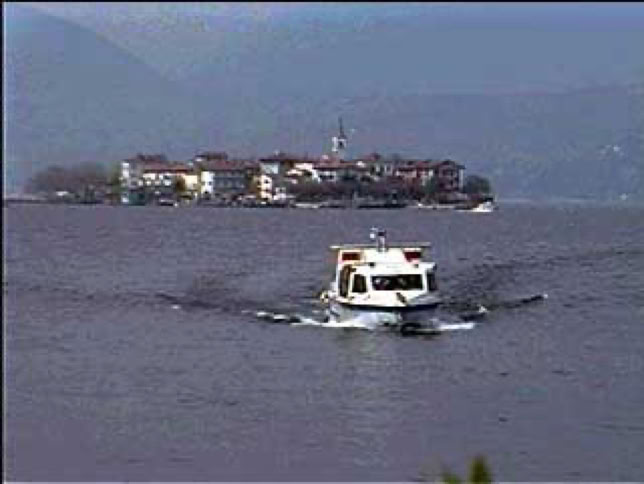 午後はまたランチャを飛ばして北に向かう。まずはマッジョーレ湖のイゾラ・ボッローメオが目的地。ここは湖の中に浮かぶ三つの小島で有名なところ。三つの島ともボッローメオ家の持ち物で、特にイゾラ・ベッラと呼ばれる島は島全体が一つの美しい庭園になっているという。しかし、今日はボッローメオ家の人がまだ使っているので見られないとのこと。