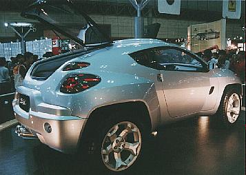 | <トヨタ・ダイハツブース> トヨタのブースかダイハツのブースか ・・・・グループ会社だよーんと、みんなにわかりやすく 構成されたブースだったような・・・・ あっ、そうそう、ダイハツコーナーの3D映像・・・・ 昔見た「東映まんがまつり」の3Dめがねみたいなめがね を、かけて見る映像はスゴイナーてな画像でした。 (映画の内容は忘れた・・んですが、3Dは凄かった。) カートやF1カーの展示もなんか印象がなくて、右の車が唯一 目にとまった車だったかなー・・・・でも、何年か前の東京モー ターショーの日産だったか忘れましたが、良く似たコンセプト カーがあった気もした車でした。 |