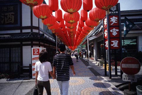 秋芳洞へ続く商店街(お土産や通りともいう)