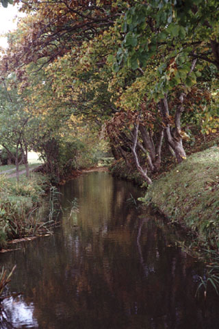 城址前をゆったりと用水が流れてゆく。