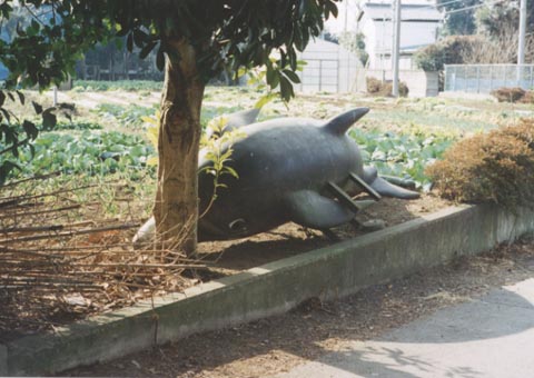 畑の片隅にイルカが。なんでこんな所に来ることになったんだろうか。