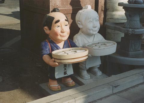 塗装後と塗装前。 ここまで来てやっと気がついた。ここは彫刻を作る、もしくは加工する工場だったのだ。でも外に置くことはないんじゃぁないのか。まさか売れ残りを飾りに使っているんじゃぁないだろうな。 前へ 戻る