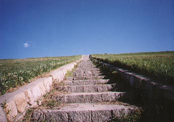 家の裏手にある土手にぶち当たった。真っ青な湖面に階段が一筋降りてゆく、というのは嘘で、土手を上ってゆく階段が一筋。 前へ 次へ
