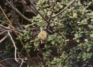 こんな花が咲く木が路地に。でもなんという木なんだろう。