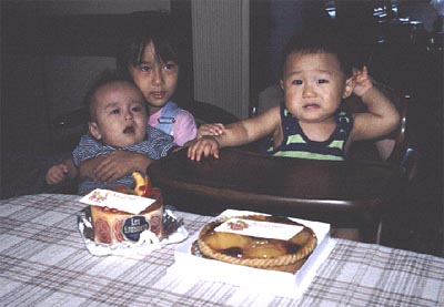 2日遅れの1歳の誕生日を10ヶ月の源ちゃんと4歳の早苗ちゃんと共に祝ってもらう。ケーキはレ・アントルメのホールだ。 戻る