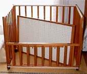 こいつは組み立て型なんだけど、初回に持ってきてもらった時には部品が足りなかった。中敷を止めるビスが全部入っていない。どうやって子供を寝かせるんだぁ(笑)