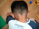 床屋 チビ1号初めて床屋に行く。別に泣くこともなく、おとなしくしているふりを続けるチビ1号。それも15分が限界だった。それでもいつもとは違う後頭部が出現。トレ−ドマ−クのちょろ毛がなくなってすっきりだ。