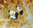 ふりかけ 恐るべしスヌーピー振掛け。スヌーピーが入っている。黒と赤があり、味もしないので多分デンプンなどだと思うのだけど、スヌーピーの横顔だ。