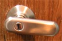 危ないから危ないから止めるように。把手 トイレをほとんど自由に使えるようになったチビ1号。しかし回転式の把手はくせ者で、たまに「トイレが開かない」と泣き叫んでいる。という訳で、把手を引掛ける形式に変更。しかしもとの把手が旧式で、なんせ30年ものだ、今の把手とは構造がかなり異なっていた。結局ドアの穴を大幅に広げて対応。それでもちょっと無様な取り付けになってしまった。それでも格段にトイレのドアは開けやすくなったらしい。