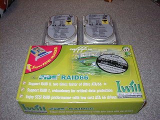今回はIwill社製のSIDE RAID66と Seagate社製のバラクーダ15GB(ST315320 A)2基を使用しました。