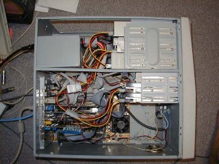 もう一つの問題は電圧の変化に対応できずマシンが落ちると言う事です。 (環境によるので、人によっては発生しないかも知れません。) 言うなれば電子レンジとクーラーを同時に使ってブレーカーが落ちたと言うか…。 自分はCDドライブにCDを入れた時いきなりリセットが掛りました。 HDD増設前には起こり得なかった事なので、電圧がかなりぎりぎりで動いてる可能性が有ります。 これに関しては電源を300WOverの物に換えるなどの対応により改善可能だとは思いますが、 現在の所確認出来る状況では無いのでまた今度と言う事になります。 (電源を換える以外に増設したボードを外すのも有効かもしれません…) (※下記写真3)