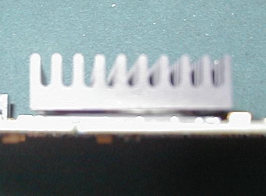 幸か不幸か1mm近くの隙間からカッターの刃を入れる事ができ、そのままヒートシンクをグラフィックチップから切り離す事ができました。次に秋葉原で買ってきた三洋製のチップクーラーを接着用の両面テープを用いて密着させ、再度動作確認を行ないました。(※下記写真3)