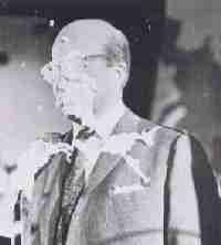 大統領にパイが当たると、あわてて数人がかけよって顔やメガネをきれいにする。しかしきれいにしてメガネを直すやいなや、別のパイが彼を襲う。こうして彼もけんか騒ぎにまきこまれていく。