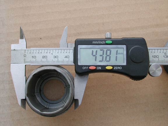 内径に違いはあるのだろうか。キャップ内部には凹みがあるため正確な測定がちょっと難しい。そこで内部構成部品の一部を入れてみた。写真左が未対策品。双方ともガタなどなかったことから、内径は双方とも同じと判断する。