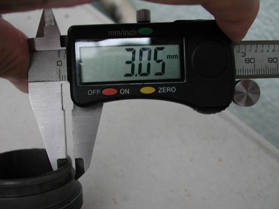 キャップにクラックが入らないということは、例の凹みに違いがあり全体的な肉厚が異なっているということなのだろうか。少々計測しにくいが、凹みとクラックの間の肉厚を測定した。下の写真は測定箇所を示したもの。