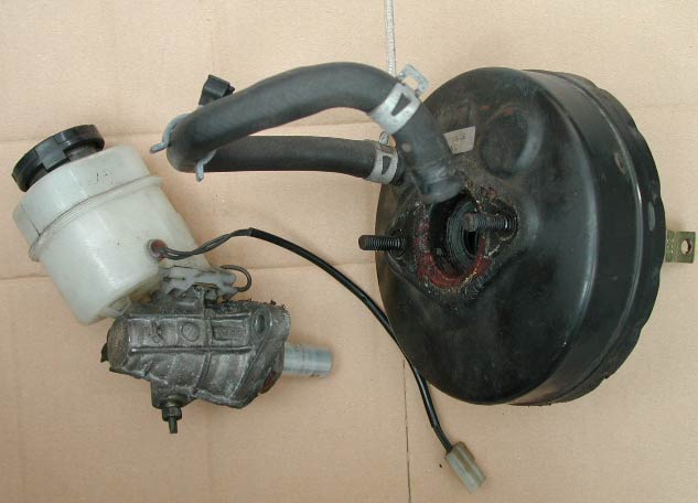 対策品みたいな形をしたものを分解すると、マスターバックの表面にブレーキフルードが垂れるということはなかったのだが、内部には多少漏れた跡がある。これはツインカム用の対策品と同じ傾向だ。