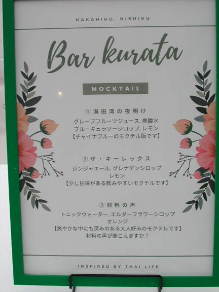 これ、チラシを拡大した物。キーレックスの倉田社長がみずからバーテンダーとなり、ノンアルコールカクテルを振る舞うというのだ。個人的に、一番注目したイベントだ。