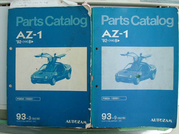ちゃんぷ♪さんよりAZ−1のパーツカタログをお借りした。写真右がお借りした物。これは最新版のパーツカタログなのだ。