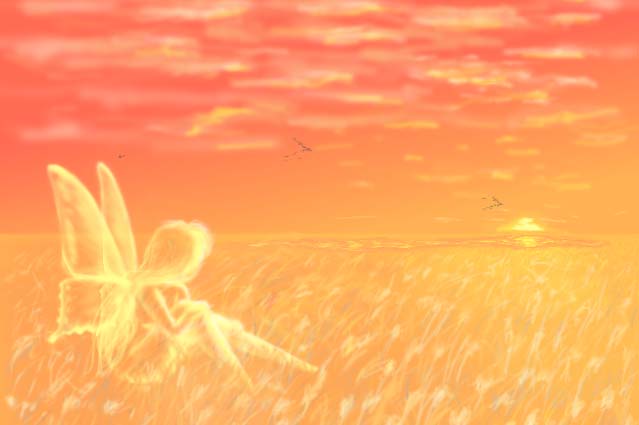 この絵は、感傷的になる秋の夕暮れの中で,絵にしてみたいなと思って描いた物です。 あまり考えずに妖精を登場させてしまったので、ポーズがいまいちかな、なんて思っていたりもします。 この絵は双子になっていて、元々はほぼ同じ構図のもう1枚の絵が存在します。そちらの方も見ていただけるとうれしいです。 [妖精シリーズメニューへ] [YUHのホームページへ]