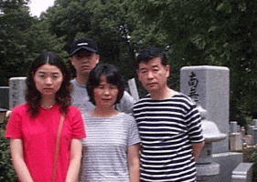 お墓でのお参りを済ませた後の、持参のデジカメでの記念写真。(今となっては数少ない家族写真のシャッターチャンスをオヤジは見過ごす筈がない。セルフタイマー機能が威力を発揮。納戸の奥に眠っていた三脚まで引っ張り出したものだ。)
