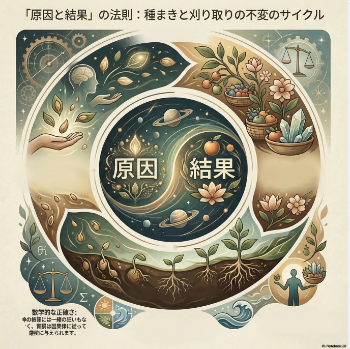 原因としての種まき: 私たちの行為・言葉・思念が「種」として蒔かれます。