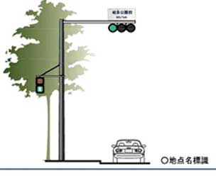 このため平成11年3月議会において私はこの問題を取り上げ、岐阜市としてのサイン整備計画の実施を求めたものであります<「サイン計画の質問」>。このほど岐阜市ではその基本計画案をまとめて公表しました<http://www.city.gifu.gifu.jp/machi/sign/sign.htm>。このうち、車両系のサインとして岐阜市内の信号のついている600ヶ所以上のすべての交差点に「地点名」をつけるとしております。岐阜市の管理する200ヶ所以上の交差点の地点名標識は平成15年度から平成16年度間で整備する予定です。